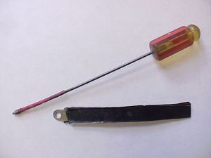 The most helpful tool I’ve built is a 3/32″ hex-head screwdriver with a flexible shaft. I use it to adjust the fuel meter enrichment lever stops while a unit is running. The Chevrolet shop manual implies I could use an ordinary 3/32″ Allen wrench (hex key) to change these screw settings. Riiiiiiight! Perhaps some people can do this easily with an L-shaped hex key, but I can’t do it without becoming extremely frustrated. There is very little room to work between the plenum and the fuel meter. I have to lay on top of the engine to see where to put the hex key. Even then, my stubby fingers can only rotate a stop screw an eighth turn at a time with a hex key.